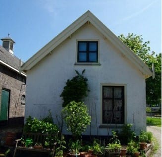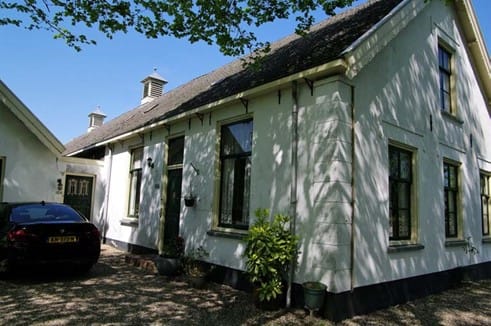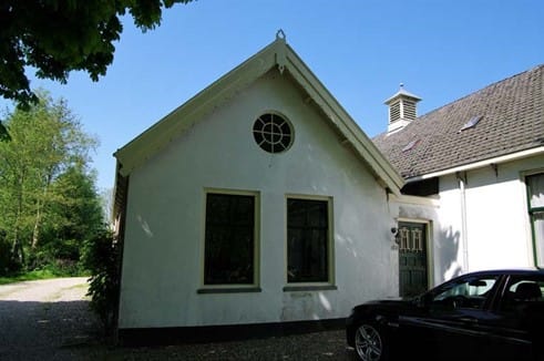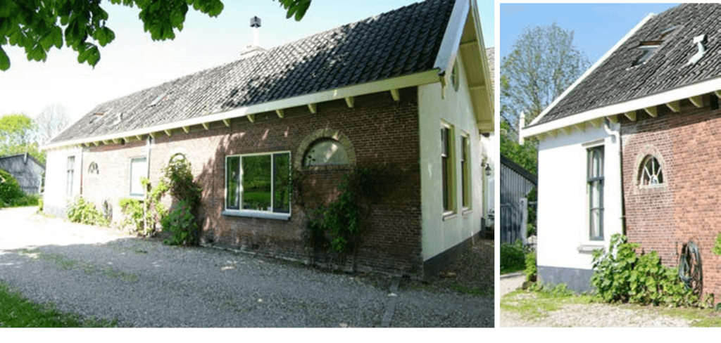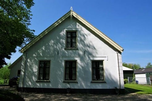 Zuidelijke zijgevel Links in de gevel is een gestukt deel, dit is de voormalige paardenstal. Hierin zit een staand, zes-ruits venster. Verdeeld over de gevel van het zomerhuis zitten drie halfronde ijzeren stalramen en twee later toegevoegde ramen. De gevel wordt aan de bovenzijde afgesloten door een houden bakgoot op geprofileerde klossen.