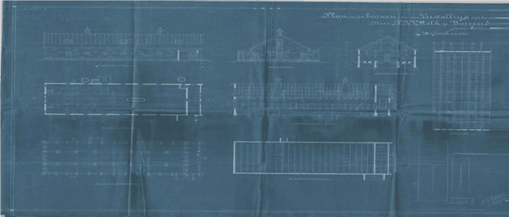 Blauwdruk herbouw stal, datum 1913, historisch bouwarchief Ouder-Amstel