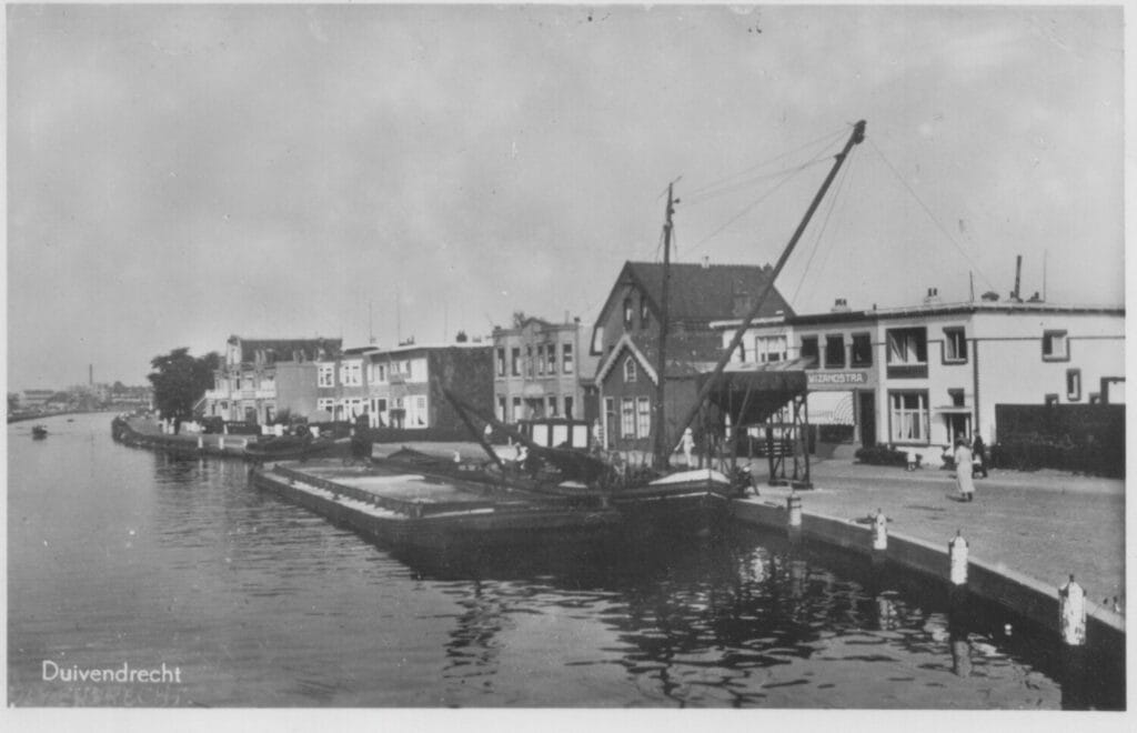 Op de foto’s bij dit artikel (hierboven nog eens afgebeeld) zien we rechts van de kolenhandel een opmerkelijk pand, in de jaren-20 stijl, wit met donkere accenten van baksteen, of zijn het tegeltjes? In dit mooie gebouw hebben ook bedrijven gezeten. Van rechts naar links, schildersbedrijf van Eekeren, kruidenier Zandstra en timmerbedrijf Ruigrok van de Werve. Over dat laatste bedrijf is indertijd in Oud-Duivendrechtse Saecken geschreven; volg deze link. Meer informatie over deze fraaie huizen en verhalen over hun bewoners blijven bij de Stichting Oud-Duivendrecht van harte welkom.