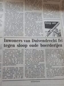 Dorp in Actie vertelt hoe de boerderijen Sophia’s Hoeve en Antoniushoeve gered zijn van de sloop als rijksmonumenten, ondanks plannen van de gemeente Ouder-Amstel. De inzet van Jopie Euwe, Ans Quirijnen en Jo Blom – en de oprichting van Stichting Oud-Duivendrecht – was hierin cruciaal. Dankzij hun toewijding kregen de boerderijen zowel lokale als landelijke aandacht.